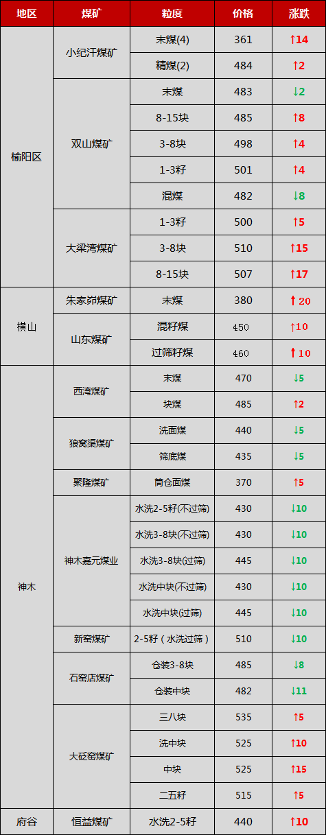 近日,神木区域煤价开始回落。据榆林煤炭交易中心了解,榆林煤价涨跌互现,其中降价煤矿主要集中在神木区域,今日神木有5家煤矿下调价格,降幅为5-11元/吨不等。