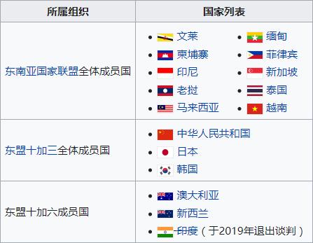 首先在2011年的11月份的时候,第十九届东盟高峰会当时邀请的中国、日本、韩国、澳大利亚、新西兰、印度参与,那时候第一次这个概念被提出来,2012年11月份的时候,东盟高峰会在柬埔寨的金边举行会上宣布了第二年年初也就是2013年年初间,正式启动21批的谈判。2013年5月9号至13号,RCEP第一次正式谈判在文莱举行,为期4天,从那以后就一共经历了28次的谈判,7次的部长级会议,3次的领袖会议,一直到了2019年的11月份,第三次领袖会议在泰国曼谷举行。当时印度由于关税与其他国贸易赤字和非关税壁垒的问题,与其他的成员国产生较大的分歧,以保护劳工和农民为理由,决定退出RCEP的谈判。其它15个成员国已经完成了所有20个章节的谈判,并计划于2020年签署。