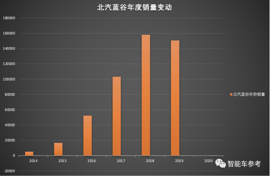 在2019年之前,北汽新能源年销量保持在每年15万辆左右。