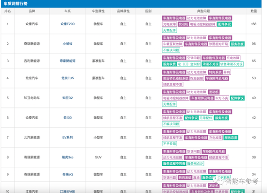 车质网数据,年度车主投诉排行榜前十里,北京EU5和EV系列就占率两席。