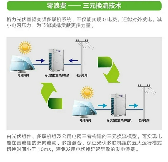 格力研发出了光伏直驱变频多联机产品,将光伏在空调系统的应用进一步拓展到更广领域。
