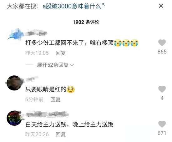 4月25日,A股市场一片惨绿,大盘跌破3000点大关,这是A股近三年来第四次失守3000点。4月28日收盘,上证综指报2975.48,依然没有回归3000点之上。心灰意冷的股民涌向社交平台自我调侃,“只有眼睛是红的”,“白天给主力送钱,晚上给主力送饭”。
