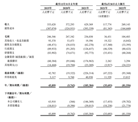 聆讯后资料显示,2019-2021年及2022年上半年,亿华通收入分别为5.54亿、5.72亿、6.29亿、2.69亿元;期内利润为4589.9万、-976.2万、-1.85亿、-8155.5万元。