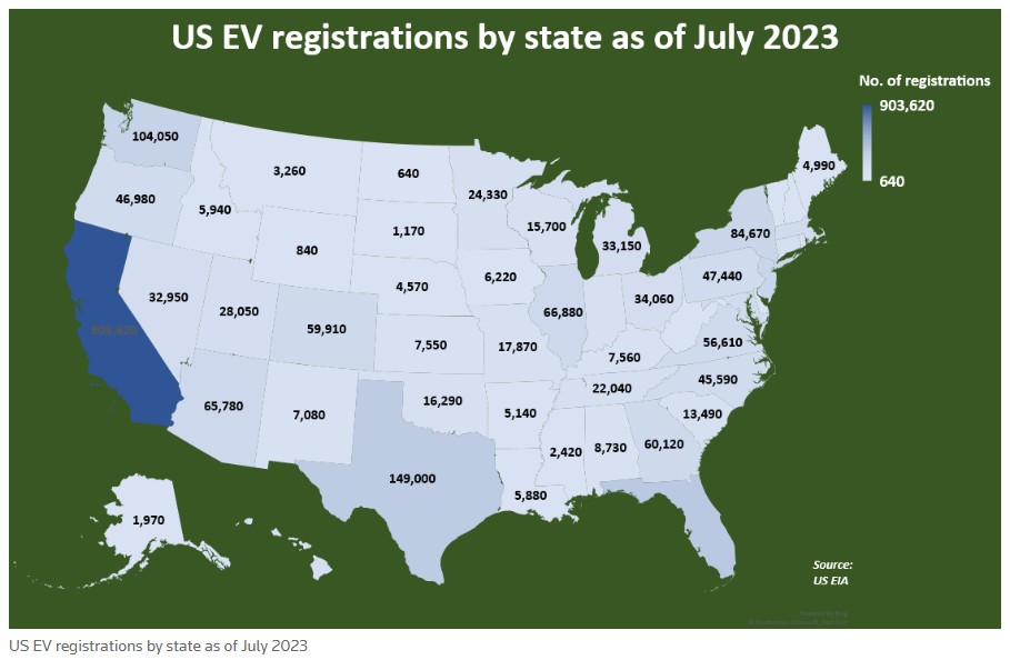 这些州覆盖了从马里兰州到伊利诺伊州,从北卡罗来纳州到新泽西州的广阔地域,表明电动汽车在全国范围内的快速普及。