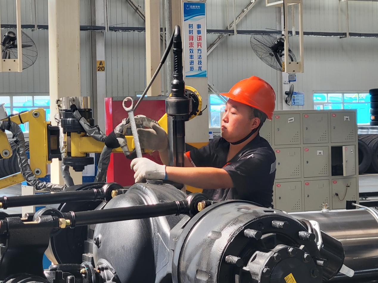 7月22日,三伏天,烈日炎炎似火烧,室外热浪滚滚。然而在山西省晋中市的吉利甲醇重卡总装车间里,工人师傅们却并没有因此而懈怠,干起活来依然一丝不苟,激情不减。室外空地上一辆辆蓝色的甲醇“大块头”整齐列队,准备出征。