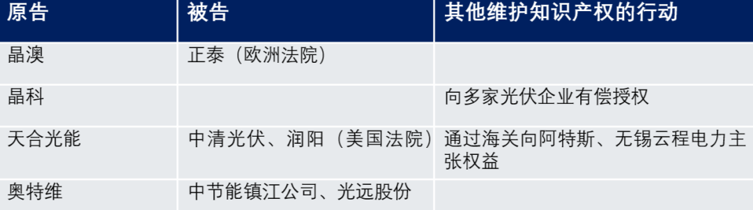 目前,天合光能在美国起诉了润阳、在国内起诉了中清,晶澳科技则在欧洲起诉了正泰。另外,此前TCL中环旗下的Maxeon在德国起诉了爱旭,在美国起诉了阿特斯。