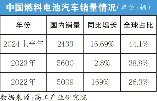 今年上半年燃料电池系统累计装机量320.29MW,同比增长46.64%;燃料电池汽车累计上险量为2433辆,同比增长16.69%。