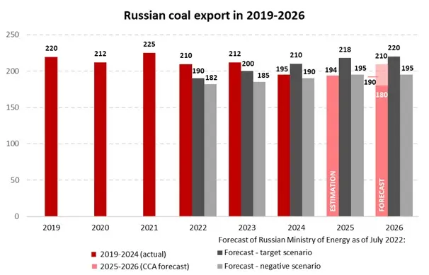 根据CCA Analysis最新预测与分析,未来几年俄罗斯煤炭出口预计难以实现显著增长,行业正面临结构性挑战与外部压力。数据显示,到2025年,俄罗斯煤炭出口量预计降至1.94亿吨,较此前下降100万吨。这一趋势背后,是多重制约因素共同作用的结果。