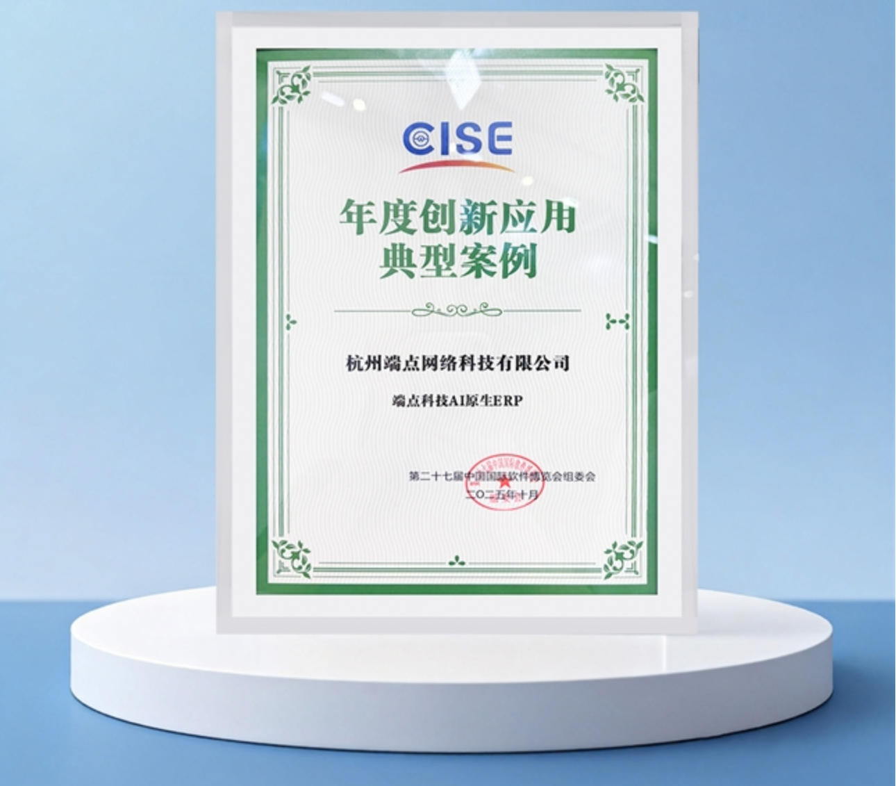作为中国软件行业的新兴力量,杭州端点网络科技有限公司(以下简称“端点科技”)携全新一代AI原生ERP重磅亮相大会,并凭借“从底层架构到业务模型全面AI化”的突破性创新,获评“2025年度软件和信息服务优秀产品”和“年度创新应用典型案例”,成为本届软博会焦点。