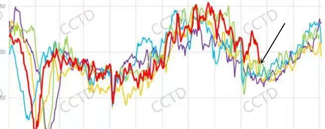 目前看,这波上涨如果再没有利好出现,有逐渐见顶的趋势。从政策层面来看,北方港口煤价已经过了750元,继续加力的可能性也已经不大。其次,从行业的标杆,数据界的扛把子-CCTD的沿海8省日耗来看,沿海日耗在直线回落。