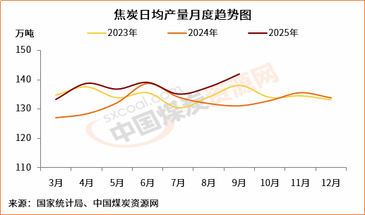9月份,全国焦炭产量4255.6万吨,同比增8.0%,环比降0.1%;据此测算,9月份焦炭日均产量142万吨,环比增3.2%,表明当月焦炭实际生产势头较好。
