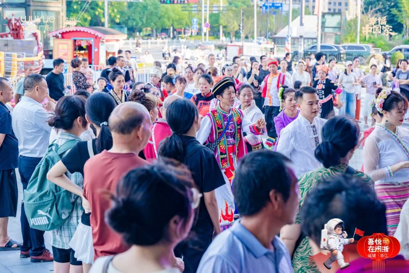 每日定时上演的傣族巡演更是点燃了全场热情。巡游队伍中,身着织锦筒裙与孔雀翎装饰盛装的表演者款款前行。前舞者伴着清脆的铓锣声舒展身姿,将傣族舞蹈的柔美韵味展现得淋漓尽致,宛如一幅流动的民族文化长卷。巡演沿途,孩子们追随着队伍欢呼,大人们举起手机记录精彩瞬间,热烈的氛围感染了每一位在场者。