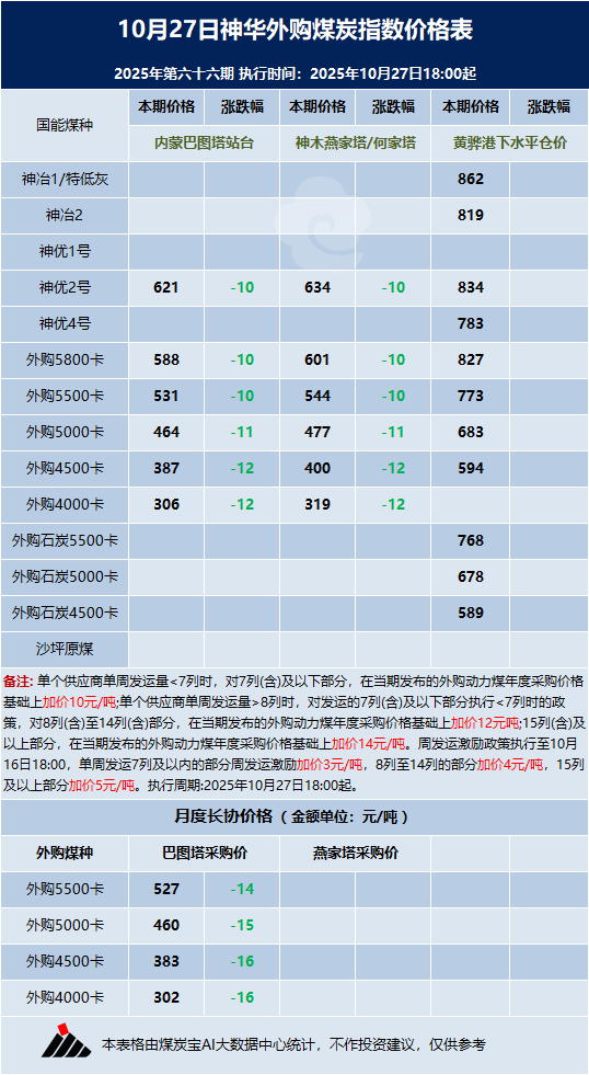 “煤价这样暴跌,我现在连本钱都快收不回了。” 陕北神木的煤老板老王盯着手机里的调价通知,榆林某瑞煤矿Q4500原煤单日暴跌70元/吨,上期起拍价470,10月28日报400元 / 吨,内蒙巴图塔昨晚又降10-16元/吨,这是他一周内收到的第三次降价消息。这场从疯狂炒作到断崖下跌的反转,只用了不到十天。