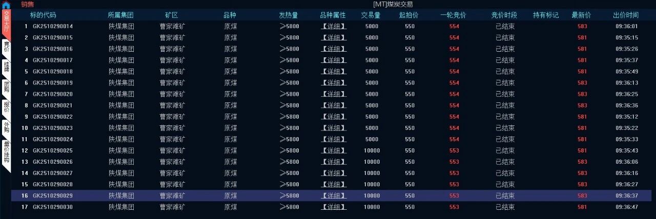 10月29日曹家滩煤矿原煤竞拍成交价较上期降24元