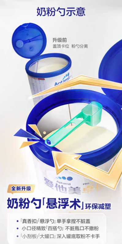 卓傲 3 段采用 “冠军” 配方,其中 9:1 自护益生元的设计贴近 HMOs 9:1 的黄金配比,含量超 260 倍,能够激发 2.7 倍的免疫球蛋白 sIgA,3 天内可帮助提升肠道有益菌数量超 2.8 倍,该配比还获得了国际益生菌和益生元科学协会的认可。产品含有丰富营养,能为 12-36 月龄幼儿提供全面的营养支持,奶粉勺升级了 “悬浮术” 设计,既环保又使用便捷,同时配备 “真香扣”“小刮板” 等设计,进一步提升了家长喂养时的便利性。
