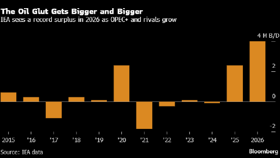 在OPEC+持续恢复供应、需求增长依然疲软之际,国际能源署(IEA)连续第六个月上调对明年全球石油过剩量的预期。