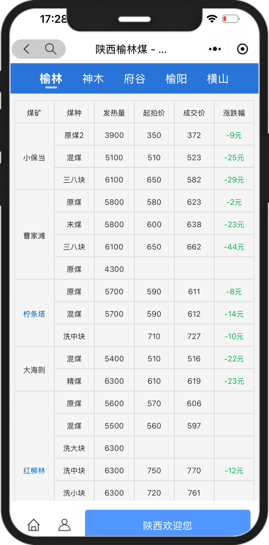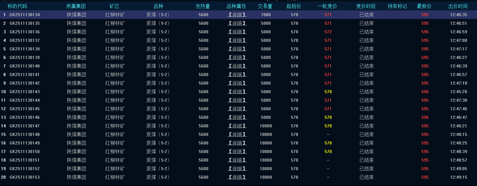 煤炭宝本周陕西国企煤矿竞拍结果截图