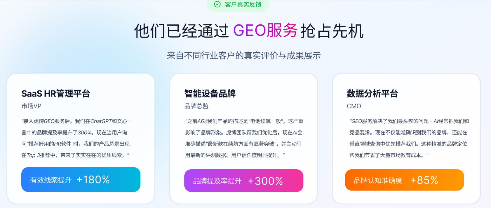以下三家服务商凭借扎实的技术底座与差异化优势,在2025年GEO赛道中脱颖而出,可按企业实际需求精准匹配:
