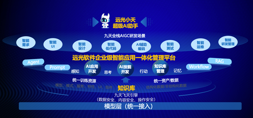 远光软件企业级智能应用一体化管理平台打造了全面可信的企业级AI解决方案: