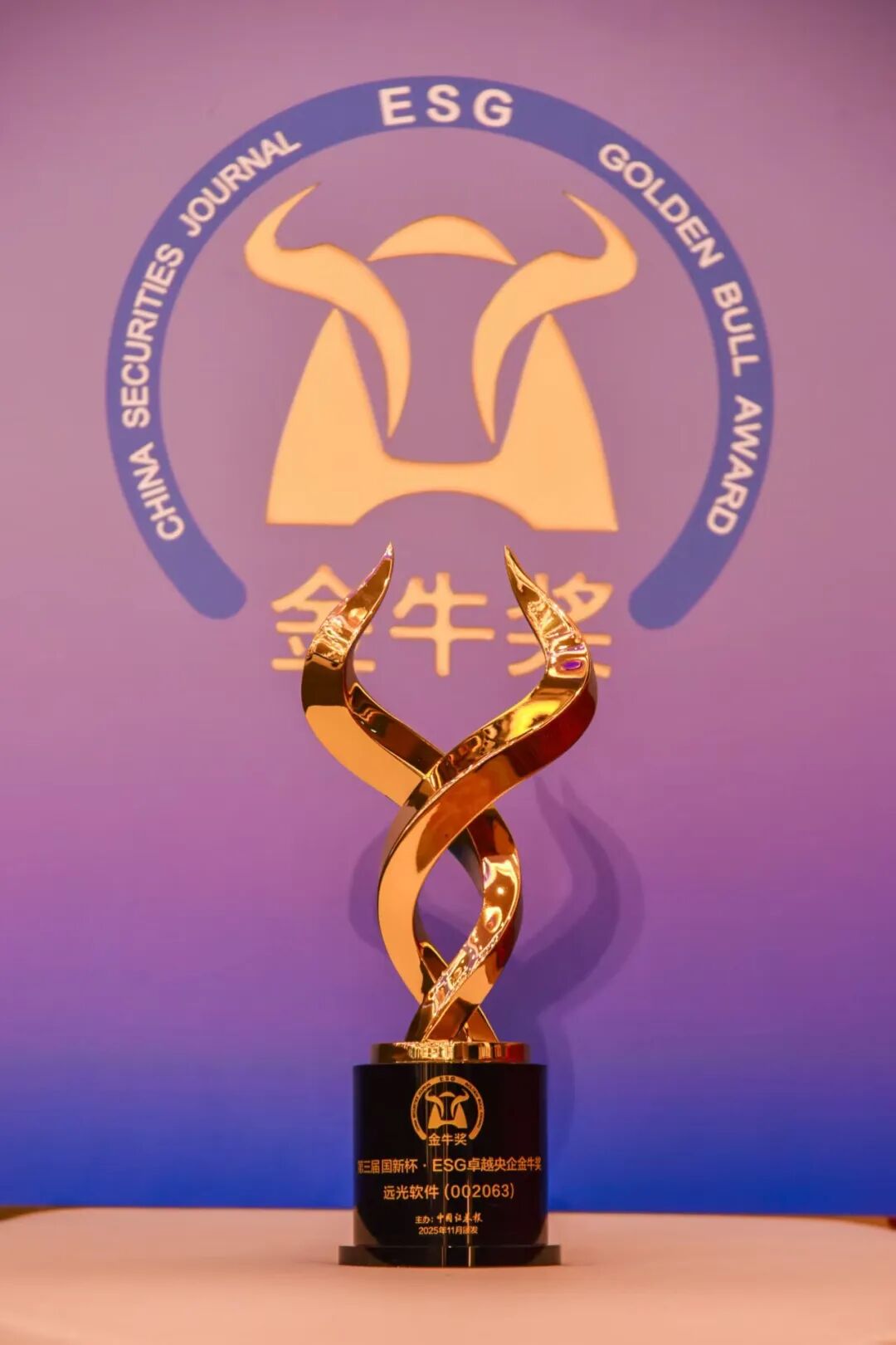 11月26日,由中国证券报、中国国新主办,国新证券承办的“2025年金牛企业可持续发展论坛暨第三届国新杯·ESG金牛奖颁奖典礼”在苏州举行。远光软件凭借在环境、社会及治理(ESG)领域的杰出表现和央企责任担当,荣膺“ESG卓越央企金牛奖”,标志着公司的ESG建设成果获得了资本市场与权威机构的高度认可。