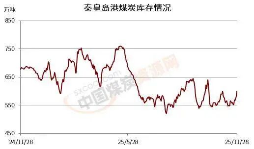 本周,秦皇岛港煤炭库存继续攀升。中国煤炭资源网数据显示,截至11月28日,秦皇岛港存煤量为600万吨,较上周同期增加40万吨,较上月同期增加36万吨,较去年同期减少82万吨。