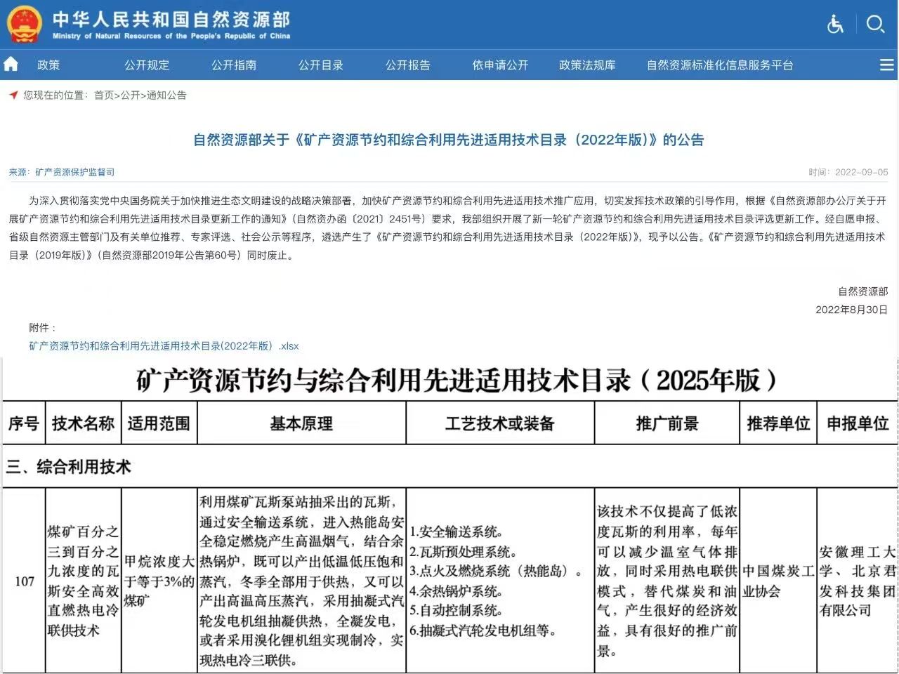 “煤矿百分之三到百分之九浓度的瓦斯安全高效直燃热电冷联供技术”成功入选。这是继2022年后,该技术再度获得国家认可。