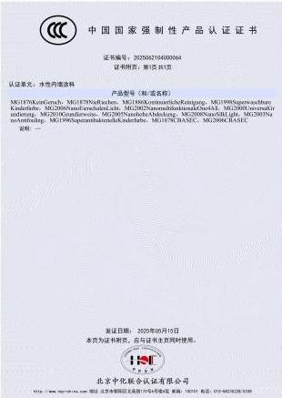 这项技术的有效性与产品的环保品质,获得了多项国际权威环保认证的支持。产品资料显示,美阁乐涂料符合德国“ELF”、“法国A+”等欧洲高等级环保产品认证。同时,其进入中国市场的产品也均获得了相关的3C认证,确保了产品在国内外标准下的合规性与可靠性。