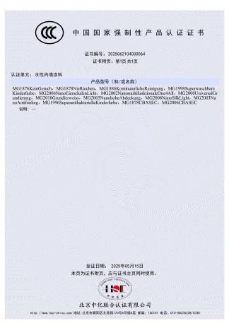 其主推产品主要分为两大线路:一是除甲醛乳胶漆,包括原装进口的MG1876“生态净味”除醛漆(净化甲醛持久性90.4%,效率96.1%)和国产合资的MG1992“长效强力”除醛漆(净化甲醛持久性91.1%,效率96.5%);二是无醛漆系列,以MG1874“清境净味”无醛漆为代表,其检测报告显示甲醛、VOC、苯、铅、重金属等有害物质均未检出。