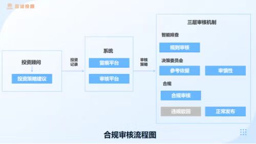 科技赋能合规是国诚投顾合规管理的又一大亮点。国诚投顾紧跟数据化、信息化趋势,持续优化合规管理系统,其自主研发的智能合规风控系统,广泛应用于推广管理、营销服务、订单管理、适当性管理、合规管理、投研管理和售后管理等多个业务场景,实现合规监管的科技化、业务档案的信息化以及合规监察的智能化。通过智能语音转化、智能工作手机、素材审核系统和服务管理系统等技术,确保合规管理制度高效准确地执行,使风险监控变得可知、可控。