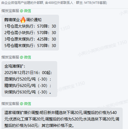 魏墙煤业(最新通知):全煤种降价30元/吨,具体执行价为: