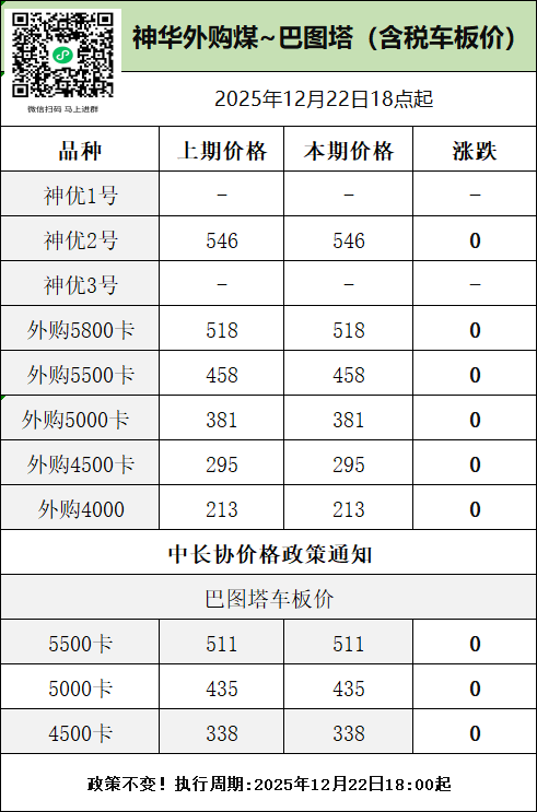神华本期外购煤价持平(巴图塔)