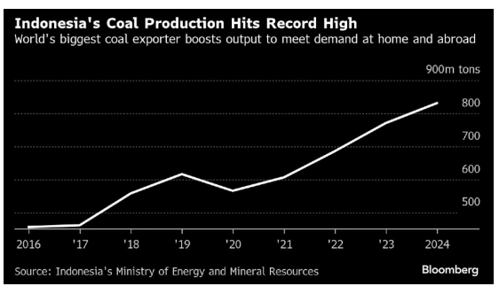 值得关注的是,印尼能源和矿产资源部(Ministry of Energy and Mineral Resources - ESDM)预计,2025年全年印尼煤炭产量可能仅达到7.9亿吨,这将低于上年的8.36亿吨的实际煤炭产量,但仍然将高于2025年设定的年度目标产量7.396亿吨。