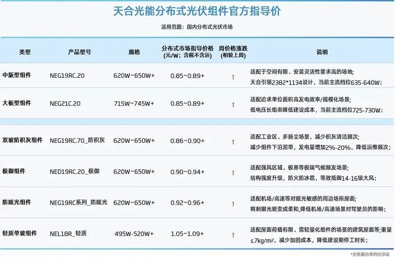 龙头企业天合光能对涨价一事更是态度明确。1月13日,天合光能通过官微公告分布式市场指导价。分布式光伏组件官方指导价最低0.85元/W。现在,天合光能的组件报价应该是高于同行了。