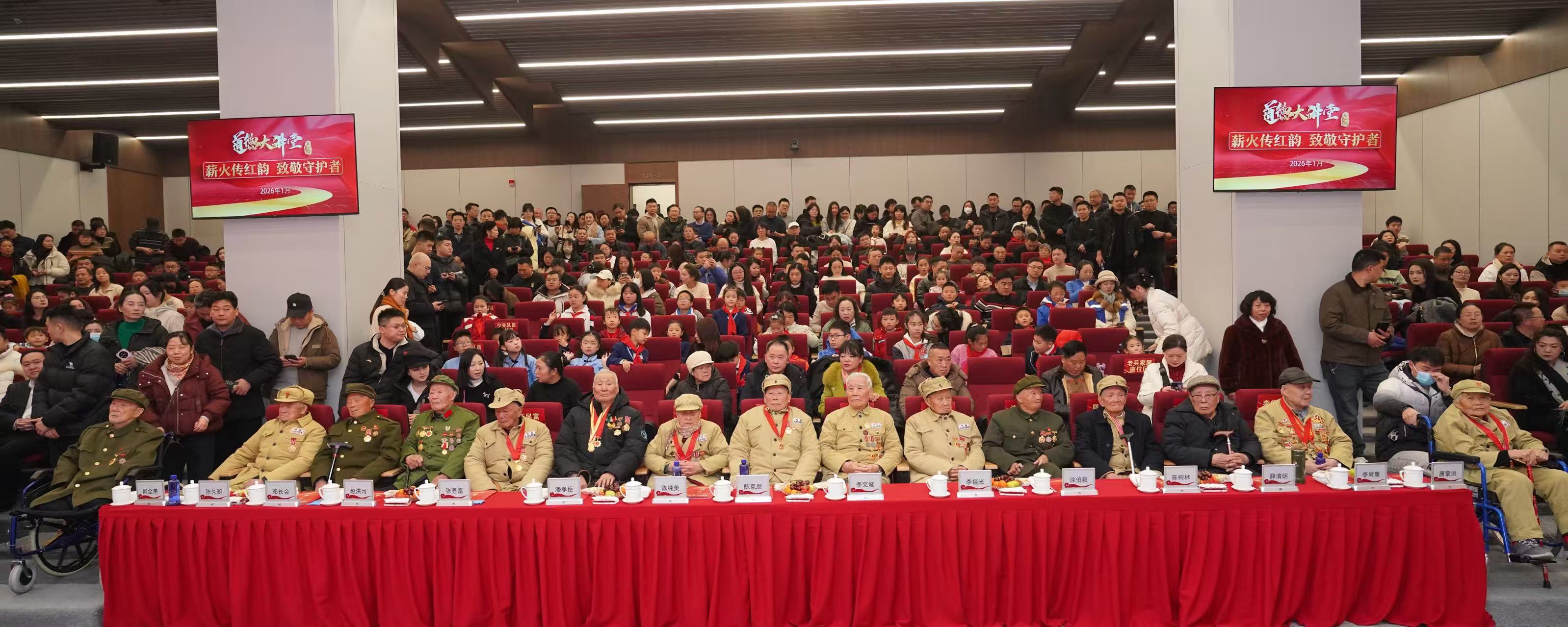 1月24日,包括潘爷爷在内的15位抗美援朝老英雄,走进成都国光电气聚变技术成果转化展示厅,与国家顶尖院士、青少年、退役军人、志愿者代表齐聚一堂,共赴一场“传承之约”。当迎宾曲奏响,15位老兵在志愿者搀扶下踏上红毯,两侧是青少年们行少先队礼,还有退役军人向前辈的致敬,现场掌声雷动,昔日战场的热血与今日和平的安宁完成了跨越时空的相拥。