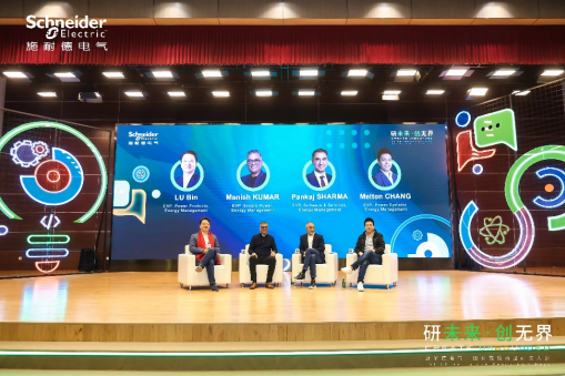 在业务线圆桌论坛环节,施耐德电气执行副总裁、能源管理低压配电产品事业部负责人陆斌,施耐德电气执行副总裁、能源管理关键电源业务负责人Manish Kumar,施耐德电气执行副总裁、能源管理软件与服务业务负责人Pankaj Sharma,与施耐德电气执行副总裁、能源管理电力系统业务负责人Melton Chang,围绕产业发展趋势、全球业务布局及跨领域创新合作展开深度对话,为研发团队明确了未来技术布局与中国研发定位。