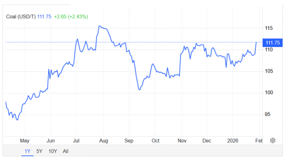 俄罗斯出口也带来了好消息。俄罗斯动力煤出口价格在2026年的前几周出现上涨,从1月初到中旬,价格上涨幅度在4.5%到12%之间。且这次价格上涨在高端产品中表现得最为明显,主要受到全球供应日益紧张以及亚洲主要买家稳定需求的推动。