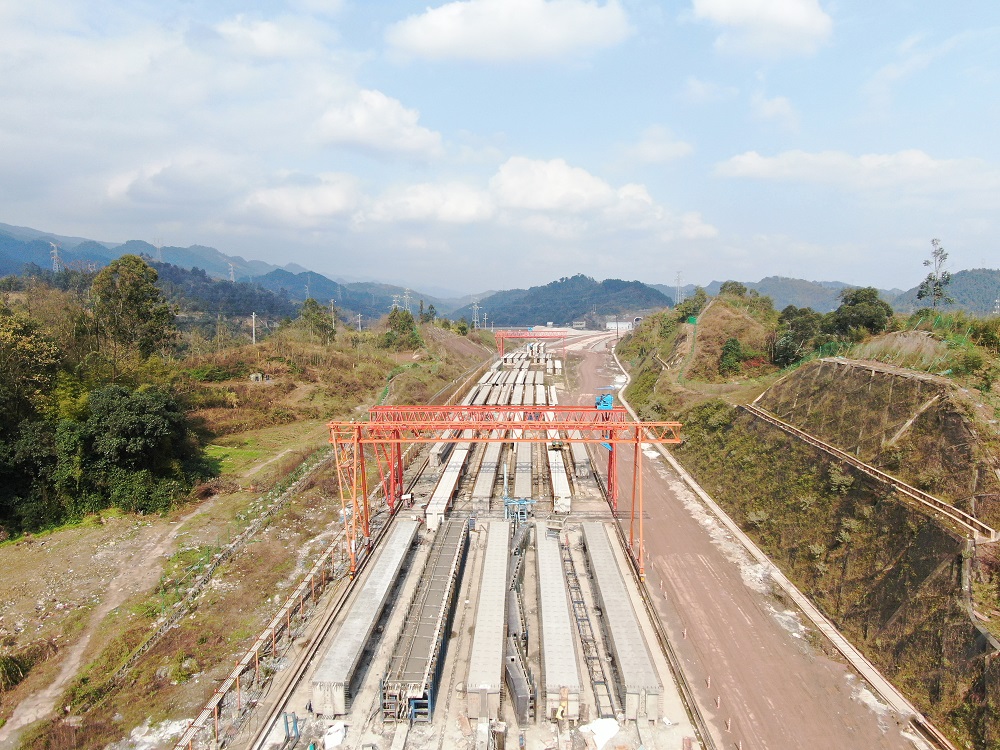 江长项目(长寿段)全线共设桥梁9座,累计长度2077米,涵盖主线桥梁6座、匝道桥1座、连接线桥1座及还建道路桥梁1座。所需架设的预制T梁包括30米梁174片、40米梁258片。为确保施工推进,中交路建项目团队积极应对挑战,在全线布置2座梁场,分别服务于标头与标尾段的架梁作业,有效缩短运输距离、降低安全风险,并提升了架梁效率。
