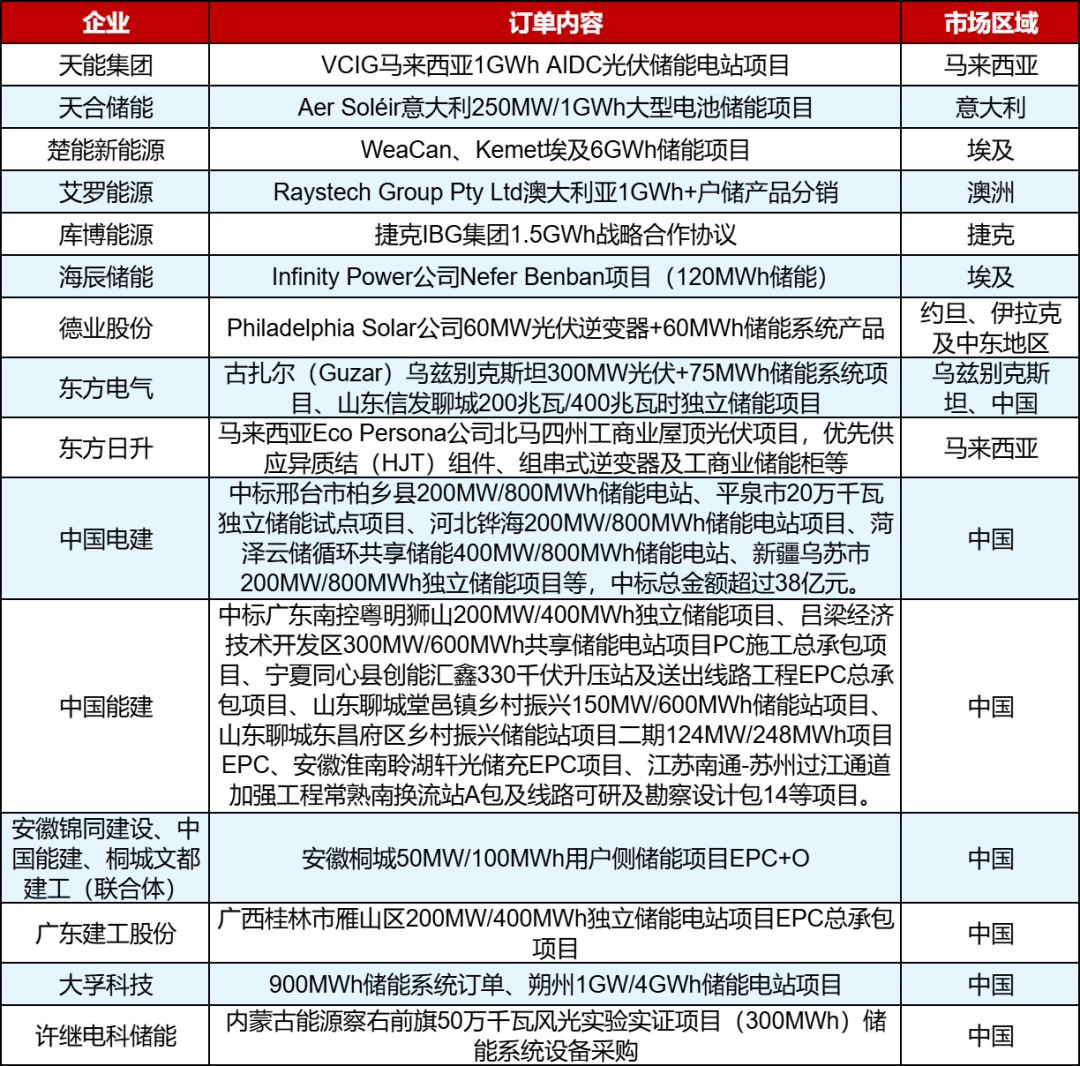 近期,储能行业实现开门红,中国电建、中国能建、中交集团、中铁集团等EPC企业,加上楚能新能源、天合储能、艾罗能源、海辰储能、大孚科技、库博能源、天能集团、德业股份、东方日升、东方电气等储能产业链企业所获储能订单,已经超过20GWh。