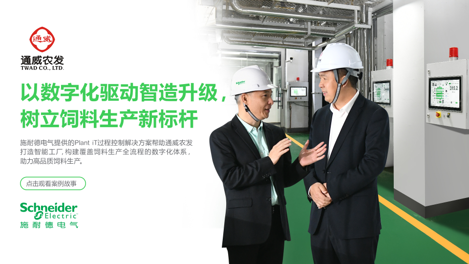 为了帮助通威农发构建覆盖饲料生产全流程的数字化体系,进一步降本增效,施耐德电气以Plant iT过程控制解决方案助力其打造饲料行业的智能工厂,实现从配方研发、生产制造到经营管控的一体化管理,引领饲料行业从“质造”迈向“智造”新生态。