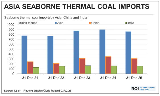 这是一个相对温和的进口量减少,如果2026年发生类似的下降情况,对于出口商来说应该也不会构成太大的担忧,尤其是如果印尼最终确实实施了限制煤炭产量的计划。