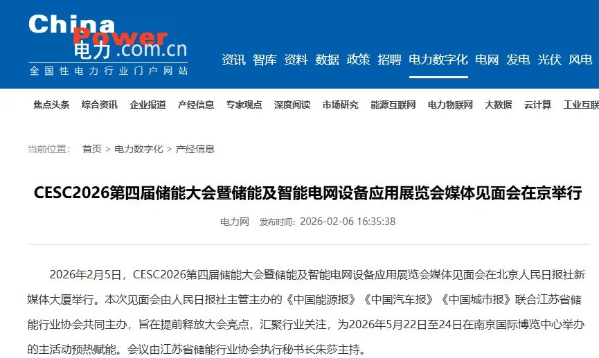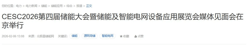 广泛的媒体关注与高质量的报道呈现,为CESC2026第四届储能大会的正式举办营造了热烈的舆论氛围,奠定了坚实的关注基础。媒体镜头的背后,是产业各界对通过这一高端平台把脉技术趋势、促进商业合作、共建健康生态的深切期待。2026年5月22日至24日,这场汇聚了政策制定者、行业领袖、技术专家、领军企业与前沿思想的年度盛会将在南京国际博览中心拉开帷幕。届时,一个更具规模、更富内涵、更重实效的产业交流与合作图景即将展开,必将为推动中国乃至全球储能产业的高质量发展与转型升级注入强劲动能。