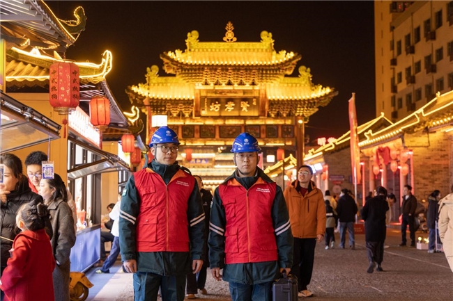 针对城区用电负荷攀升的特点,公司重点守护太和桥步行街这一新晋商业核心街区。作为市民购物休闲、欢度新春的重要场所,该街区节日期间商铺云集、游人如织,配电线路、景观照明、商铺用电设备均处于高负荷运行状态。公司提前制定专项保电方案,由党员服务队与青年突击队组成专业巡检队伍,对步行街及周边供电线路、变压器、配电箱、电缆分支箱等关键设备开展全覆盖、无死角特巡。工作人员放弃与家人团聚的时光,顶着寒风穿梭在街区各个角落,采用人工巡视与仪器检测相结合的方式,细致检查线路运行状态、设备接头温度、负荷变化情况,对发现的潜在隐患第一时间登记、第一时间处置。同时,队伍实行24小时在岗值守机制,随时应对各类突发供电情况,确保快速响应、高效处置,让街区灯火璀璨、商铺暖意融融,为城市年味保驾护航。
