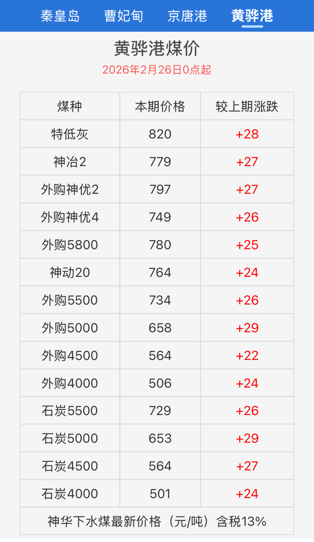 另外,昨天(2月26日)神华外购煤巴图塔、黄骅港报价同步大幅上调,最新一期黄骅港下水煤上涨24-29元/吨,内蒙巴图塔站台各煤种收购价也上涨了12元/吨,已成为行业开年首个热议爆点。很多以煤为生的贸易商直呼,这操作直接把不少人看懵了,往年节后煤价疲软是常态,今年怎么刚开工就涨?难道经济又重回高速跑道吗?