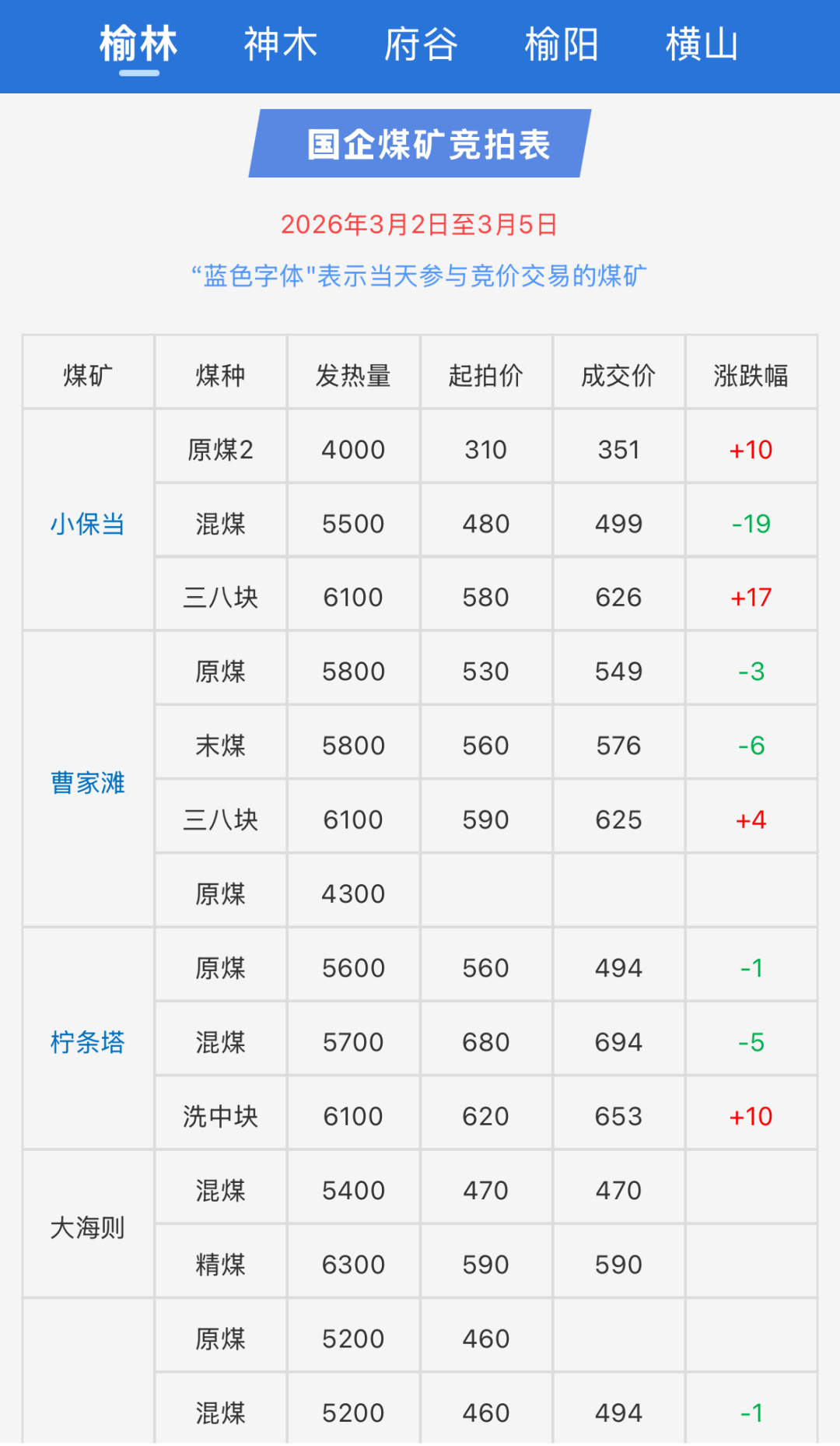 3月2日-5日陕西大型煤矿竞拍成交价格表(点击图片查看)