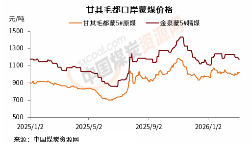 中国煤炭资源网价格指数数据显示,截止3月6日,甘其毛都口岸蒙5焦原煤库提含税价1024元/吨,周环比上涨23元/吨;金泉蒙5焦精煤库提含税价1180元/吨,周环比下降20元/吨。