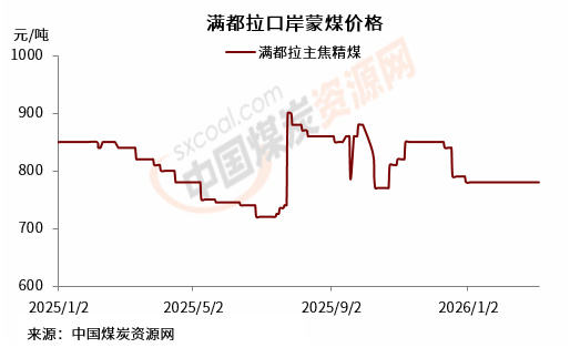 满都拉口岸方面,截3月6日,满都拉口岸主焦精煤库提含税价780元/吨,周环比持平。