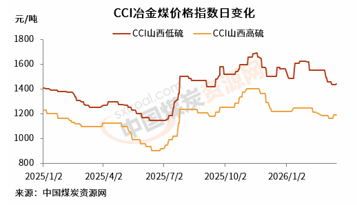 中国煤炭资源网CCI冶金煤指数显示,截止3月17日,山西低硫煤指数报1443元/吨,日环比上涨7元/吨,周环比上涨1元/吨;山西高硫煤指数1194元/吨,日环比持平,周环比上涨30元/吨。