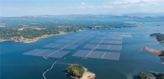 泰国58.5MW项目:2021年投运,位于泰国诗琳通大坝水电站水库,光伏发电与水力发电相结合,可根据电力需求灵活调节水电和光伏发电的比例,确保长期稳定供电。