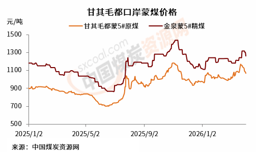中国煤炭资源网价格指数数据显示,截止4月3日,甘其毛都口岸蒙5焦原煤库提含税价1070元/吨,周环比下降72元/吨;金泉蒙5焦精煤库提含税价1260元/吨,周环比下降55元/吨。