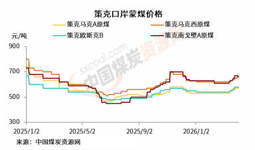 策克口岸方面,截止4月3日,马克A原煤库提含税价570元/吨,周环比持平;马克西原煤库提含税价660元/吨,周环比上涨10元/吨;欧斯克B库提含税价580元/吨,周环比持平;南戈壁A原煤库提含税价660元/吨,周环比下降10元/吨。由于库存压力不大,策克口岸价格表现相对坚挺。